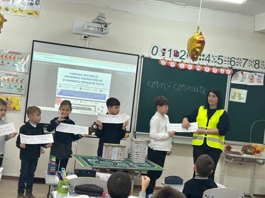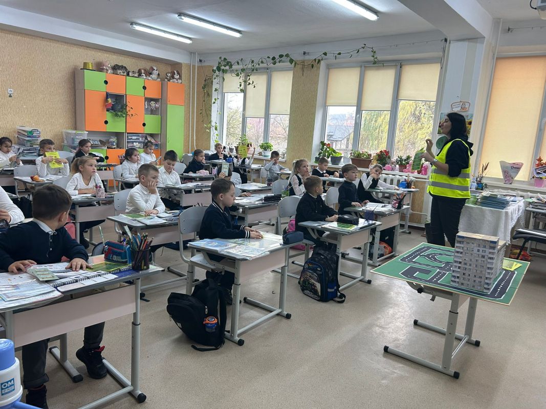Practical activities were also carried out by primary school students from Mihail Sadoveanu Theoretical High School in Hincesti town, who became acquainted with the main road signs and participated in interactive exercises on how to cross a street safely and the responsible behavior of pedestrians. The activity had the role of consolidating theoretical knowledge and forming safe practical skills from an early age.